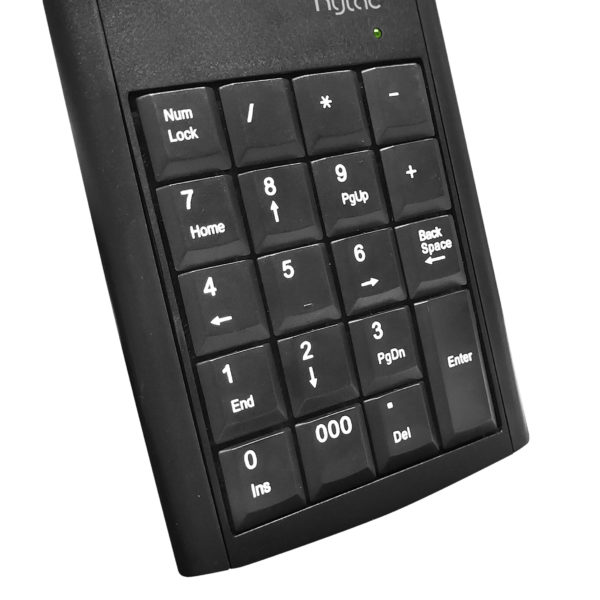 19 Full-sized, low-profile numerical keys that are easy to identify. Ideal for data input and increased accuracy. Backspace key and number lock included on the numpad. - Slim & Lightweight Design